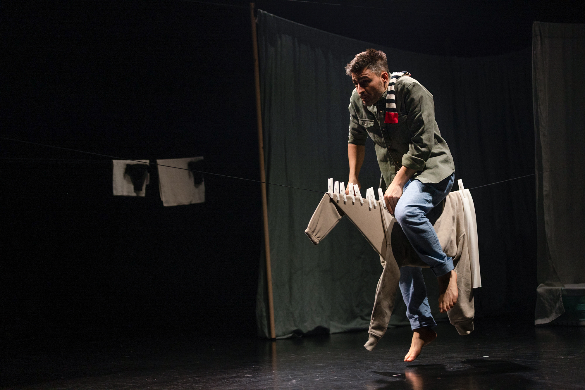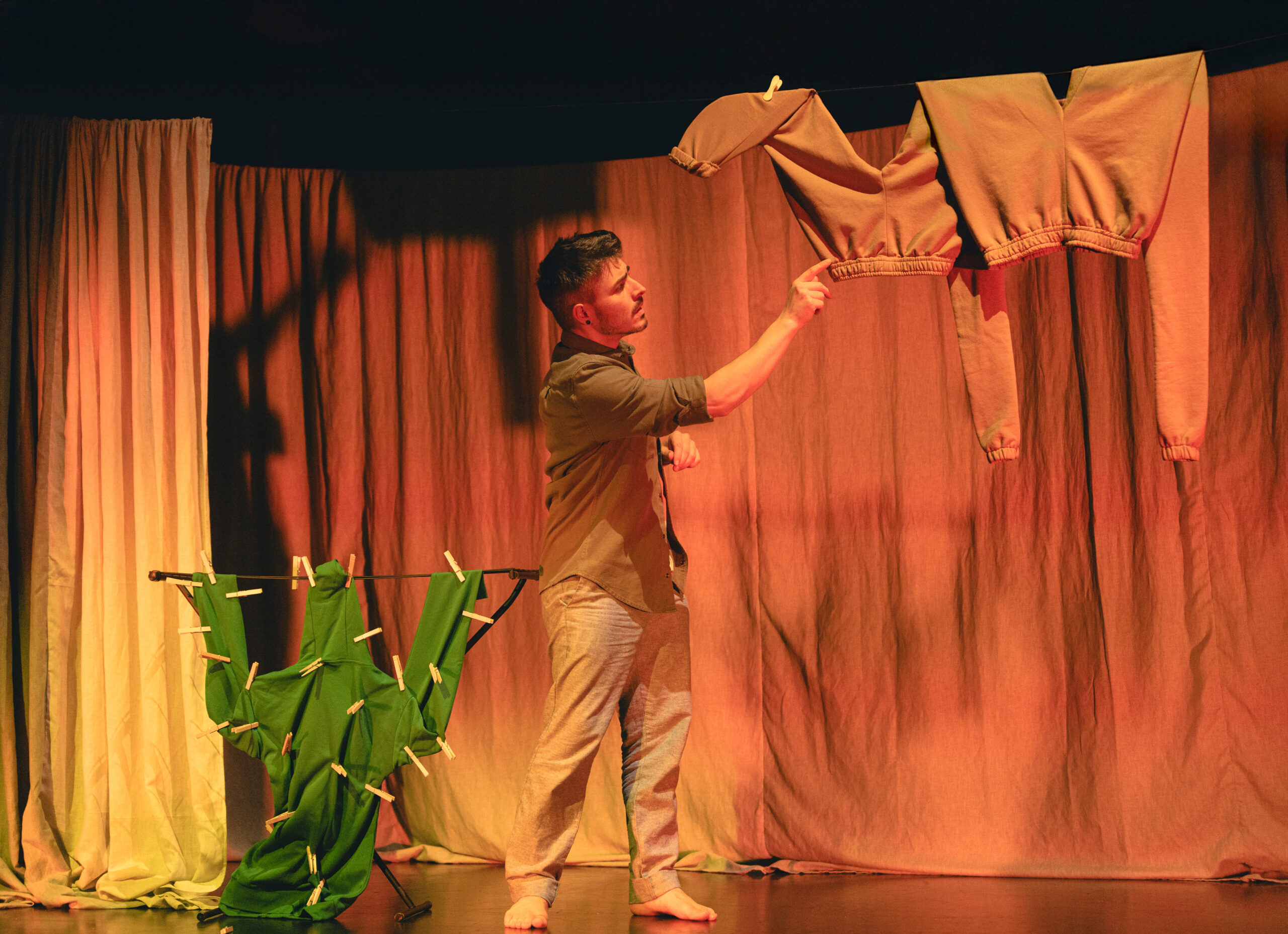 Inspired by Stentzel’s photographic series Clothing Line Animals, the performance explores the whimsical world of “Household Surrealism”, looking for magic in the everyday. Using optical illusions to transform clothes and common objects into playful characters and creatures, it invites audiences into a magical universe of little visual delights.